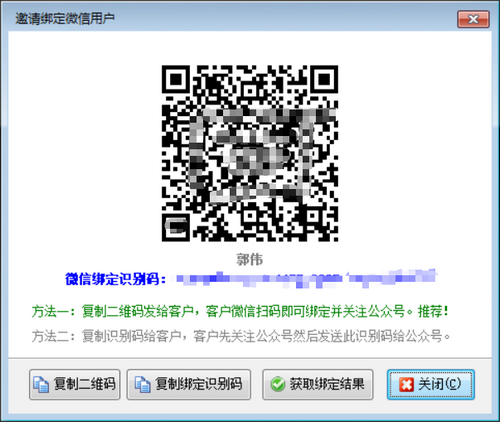 微信業務消息支持推送給客戶和內部業務員,客戶和業務員綁定操作支持在基礎資料“客戶信息”和“員工信息”中獲取綁定二維碼發送綁定,也可以直接開單界面“更多操作”下發送微信消息處點擊邀請客戶綁定微信,獲取綁定二維碼發送客戶進行綁定,如下圖所示: