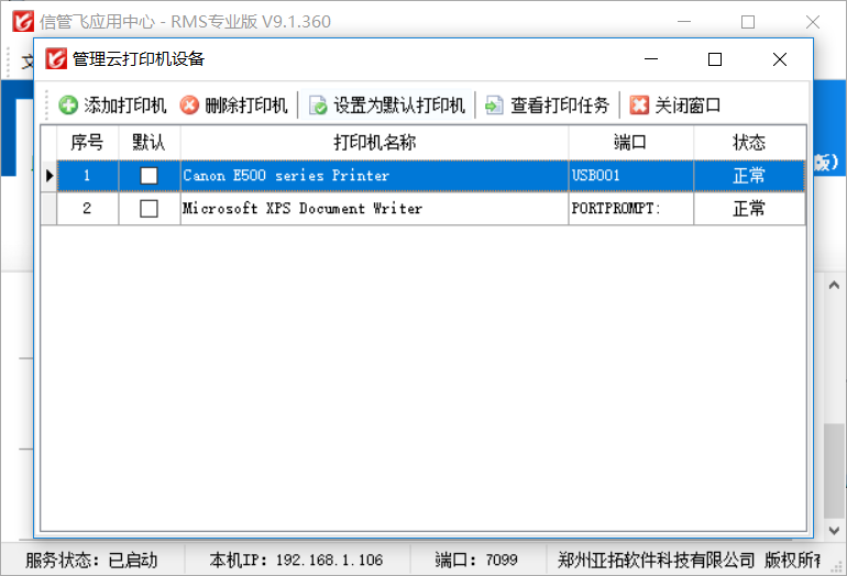 應用中心維護云打印機設備,并可設置默認的云打印機。