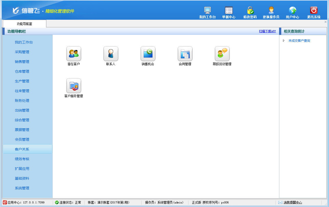 包括功能:潛在客戶管理、聯(lián)系人管理、銷售機(jī)會(huì)管理、合同管理、跟蹤回訪管理、客戶服務(wù)管理等功能。