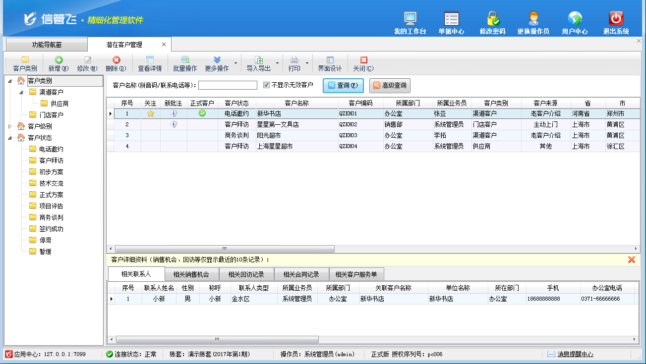 客戶關(guān)系管理的典型功能截圖如下: