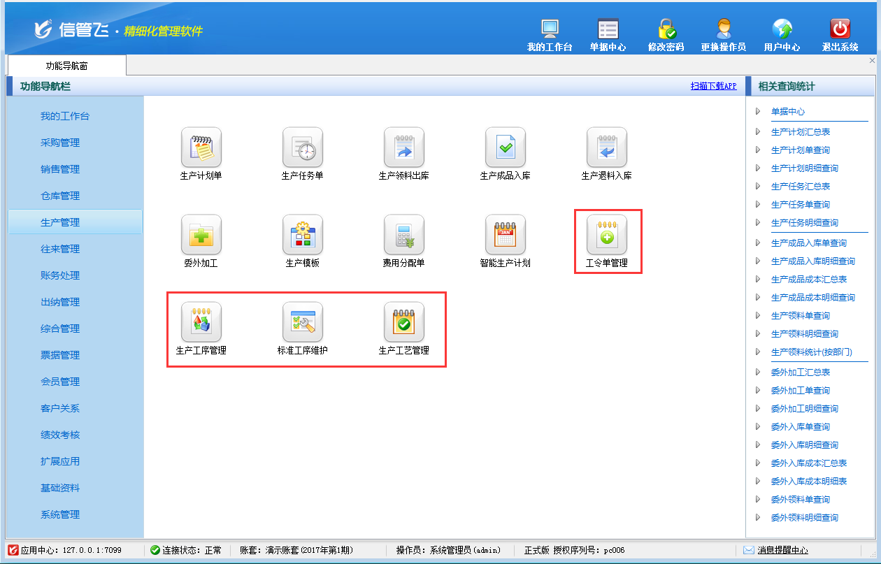 生產工序管理的典型功能截圖如下: