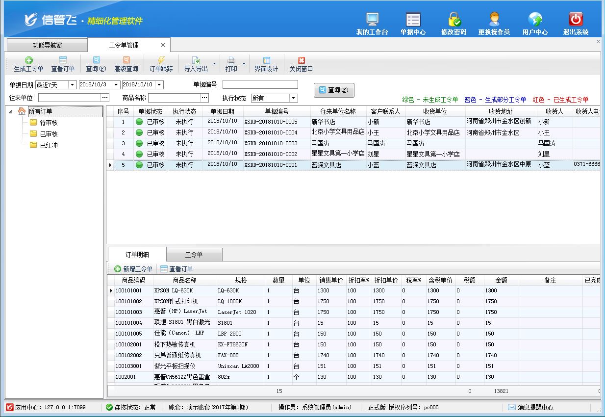 工令單管理:用于管理生產過程中的生產工令單,銷售訂單審核后,可以根據銷售訂單生成生產工令單,對工令單設置生產工序流程,然后根據工令單的生產工序流程進行生產。