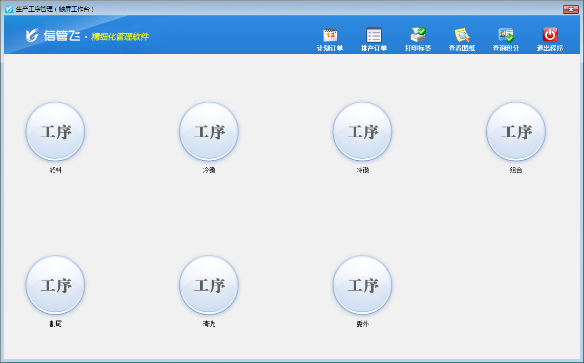 生產工序管理(觸屏工作臺)為整個生產過程中各工序實際操作界面,請按照工令單設置的生產工序流程進行生產。