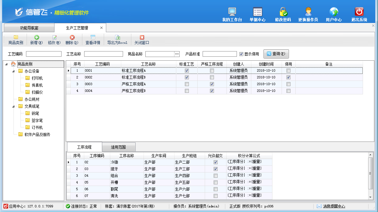 功能描述:生產工序管理用于管理整個生產過程中各工段加工產品的次序,材料經過各道工序,最終加工成成品。通過對整個生產活動的分階段進行管理,使各階段銜接的良好有序,從而可以提高產品質量和勞動生產率。