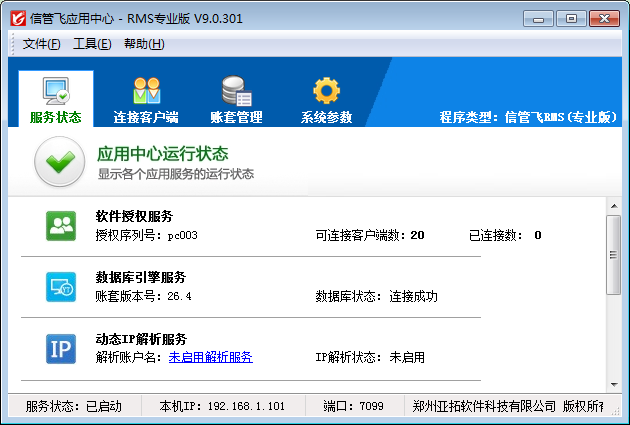 ????雙擊桌面右下角的應用中心程序圖標,即可打開信管飛應用中心主界面:
