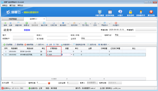 信管飛軟件支持用戶自己設(shè)置數(shù)據(jù)項顯示格式,比如:單價、金額、數(shù)量等單據(jù)界面顯示小數(shù)位格式,都可進行調(diào)整。本文介紹一下擴展數(shù)值的小數(shù)位如何設(shè)置?     在功能導航窗點擊“系統(tǒng)管理”—》“系統(tǒng)參數(shù)配置”—》“系統(tǒng)參數(shù)”,在“系統(tǒng)參數(shù)”界面可以設(shè)置數(shù)據(jù)項顯示格式,調(diào)整數(shù)量顯示格式擴展數(shù)值的也會改變,設(shè)置完之后點擊“保存”按鈕保存配置,如下圖所示:     數(shù)量顯示格式設(shè)置為“0.####”,在單據(jù)開單界面,擴展數(shù)值的顯示位數(shù)也就是四位,可以設(shè)置三位或者兩位小數(shù)位,如圖所