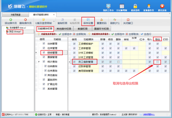 相關(guān)演示視頻:如何設(shè)置操作員不可導出員工借款單演示視頻          在企業(yè)的財務(wù)管理中,員工借款管理是重要且敏感的一環(huán)。每一筆借款記錄都涉及公司資金流向與員工個人財務(wù)往來,準確、安全地管理這些數(shù)據(jù)至關(guān)重要。然而,在日常操作中,操作員誤導出借款單等意外情況,可能會給企業(yè)帶來數(shù)據(jù)泄露、管理混亂等潛在風險。信管飛出納記賬軟件深諳企業(yè)需求,憑借強大的員工借款功能與精細的權(quán)限管理設(shè)置,為企業(yè)財務(wù)數(shù)據(jù)安全保駕護航。     下面為您