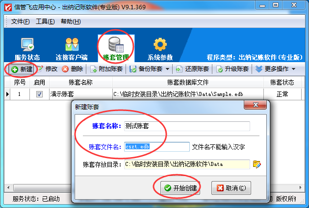 賬套即賬套數據庫,這是一個會計業務引申出來的概念,賬套數據庫中存儲業務數據。使用軟件之前建議新增加一個賬套,用于重新錄入和管理數據,信管飛RMS、信管飛倉庫管理軟件信管飛送貨單軟件、信管飛出納記賬軟件、信管飛票據打印軟件等軟件的賬套都是在主機電腦的應用中心程序上集中管理的,下面我們以信管飛出納記賬軟件為例詳細介紹下在使用軟件之前如何新增加一個賬套?