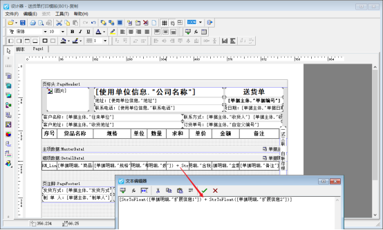 擴(kuò)展信息1=11、擴(kuò)展信息2=22,擴(kuò)展信息相加使用函數(shù)StrToFloat計(jì)算公式:[StrToFloat([單據(jù)明細(xì)."擴(kuò)展信息1"]) + StrToFloat([單據(jù)明細(xì)."擴(kuò)展信息2"])],顯示結(jié)果為33,是數(shù)值相加。