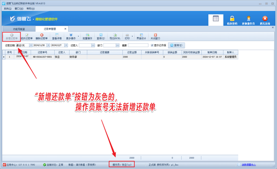 信管飛出納記賬軟件能夠有效實現(xiàn)企業(yè)員工借款與還款的流程化登記管理,顯著提升企業(yè)管理效率。在實際操作中,有時需要限制某些操作員新增還款單,以保證數(shù)據(jù)的準(zhǔn)確性和安全性。本篇文章介紹一下出納記賬軟件如何設(shè)置操作員不可新增還款單? 演示視頻觀看鏈接:出納記賬軟件如何設(shè)置操作員不可新增還款單演示視頻