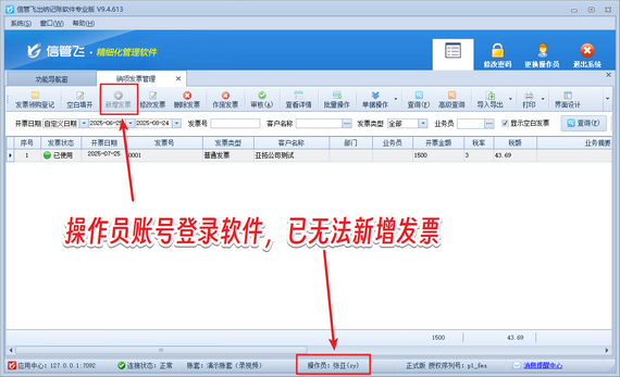 在數(shù)字化財(cái)務(wù)管理中,權(quán)限細(xì)分是企業(yè)內(nèi)控的關(guān)鍵一環(huán)。信管飛出納記賬軟件以用戶需求為導(dǎo)向,推出“操作員不可登記進(jìn)銷(xiāo)項(xiàng)發(fā)票”功能,幫助企業(yè)實(shí)現(xiàn)財(cái)務(wù)流程的精準(zhǔn)管控。這一設(shè)計(jì)直擊傳統(tǒng)記賬軟件權(quán)限模糊的痛點(diǎn),讓財(cái)務(wù)分工更清晰、數(shù)據(jù)更安全。    演示視頻觀看鏈接:出納記賬軟件如何設(shè)置操作員不可新增進(jìn)銷(xiāo)項(xiàng)發(fā)票演示視頻  &n