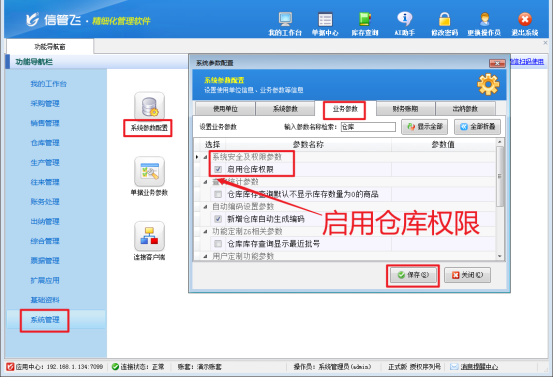在使用信管飛軟件進(jìn)行新增倉庫時(shí),是否遇到過這樣的困擾:操作員在倉庫信息界面新增了倉庫,卻發(fā)現(xiàn)新增的倉庫信息如同“石沉大海”,根本無法顯示,這嚴(yán)重影響了工作效率,出現(xiàn)這種問題的主要原因在于該操作員賬號沒有分配到倉庫權(quán)限導(dǎo)致的,本篇文章介紹下如何解決?     首先,切換系統(tǒng)管理員登錄,功能導(dǎo)航窗點(diǎn)擊“系統(tǒng)管理”