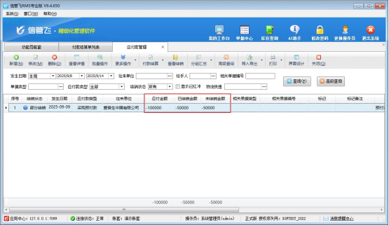 信管飛管理軟件專業(yè)版、標(biāo)準(zhǔn)版、星光版都支持錄入預(yù)付款,預(yù)付款是提前預(yù)付訂金,這種情況下貨物還沒有發(fā)出。如果還沒有形成相應(yīng)的訂單,這時(shí)我們可以直接錄入往來單位的預(yù)付款。下面我們以信管飛軟件為例來演示一下具體的操作步驟。     已支付供應(yīng)商采購預(yù)付款10萬元,供應(yīng)商退回5萬元該如何在系統(tǒng)里面登記呢?首先在應(yīng)付款