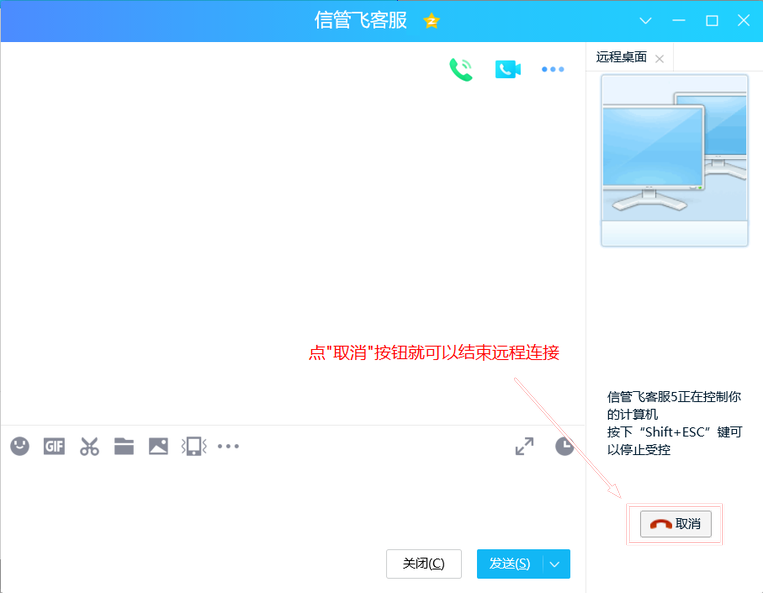 問題處理完后,您可以點“取消”按鈕,就可以結束遠程協助。如下圖所示: